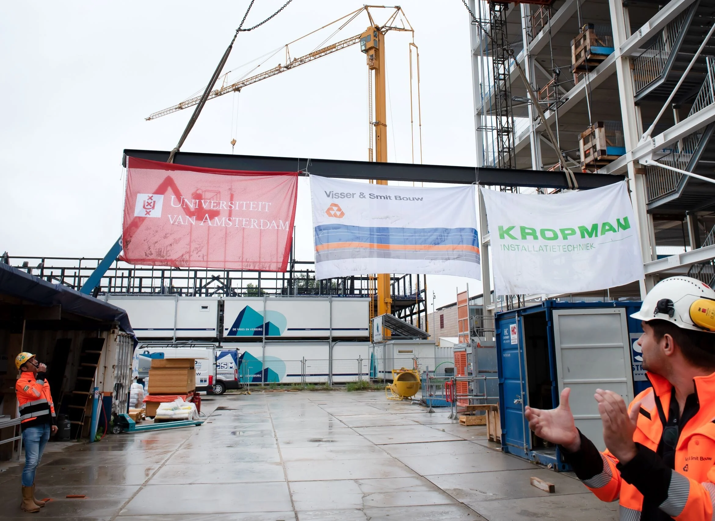 De bouw van het nieuwe gebouw LAB42 (15.000 m2) op het Amsterdam Science Park (ASP) bereikte dinsdag 29 juni 2021 het hoogste punt van circa 28 meter. Reden voor de Universiteit van Amsterdam (UvA) om iedereen die de afgelopen maanden hard heeft meegewerkt aan de bouw van LAB42 te bedanken en samen met Visser & Smit Bouw en Kropman traditiegetrouw de vlaggen naar het hoogste punt te hijsen. Het gebouw wordt duurzaam ontwikkeld en is energieneutraal.